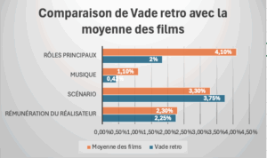 Pour bien illustrer la part du budget que la production de «Vade retro » a consacré aux quatre principaux postes de l’affiche par rapport à ce qui leur est consacré dans la moyenne des films le tableau ci-dessous est éclairant :