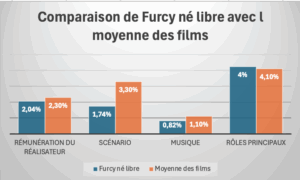 Pour bien illustrer la part du budget que la production de « Furcy né libre » a consacré aux quatre principaux postes de l’affiche par rapport à ce qui leur est consacré dans la moyenne des films le tableau ci-dessous est éclairant :