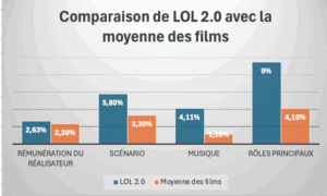 Pour bien illustrer la part du budget que la production de « LOL 2.0 » a consacré aux quatre principaux postes de l’affiche par rapport à ce qui leur est consacré dans la moyenne des films le tableau ci-dessous est éclairant :