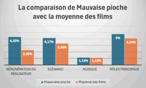 Pour bien illustrer la part du budget que la production de « Mauvaise pioche» a consacré aux quatre principaux postes de l’affiche par rapport à ce qui leur est consacré dans la moyenne des films le tableau ci-dessous est éclairant :