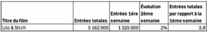 En 2025, le seul blockbuster, le dessin animé « Lilo & Stich » a lui aussi une carrière hors norme, la fréquentation totale étant 3,9 fois celle de la première semaine. En outre, il progressait de 2% en seconde semaine.